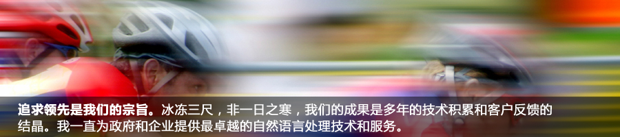 自從成立以來,我們?yōu)榭蛻籼峁└咝Ш椭悄芑男畔⑻幚砉ぞ吆妥稍兎铡T谶@個信息爆炸的時代,如何讓互聯網上和企業內部的海量信息為我們帶來更多的價值需要高度智能化的信息處理工具。我們提供的技術能夠高效并且準確的對大量文本信息進行處理、檢索、挖掘、翻譯等工作,并可方便地與信息系統的其他模塊進行整合。